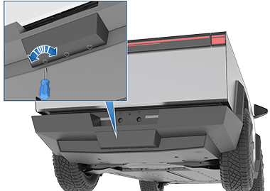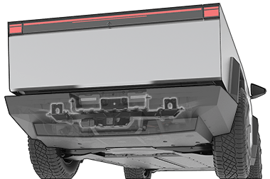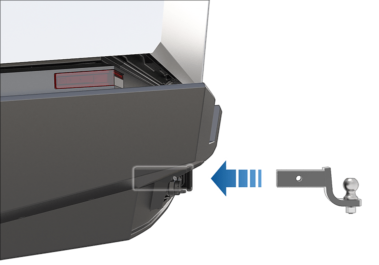 The Cybertruck trailer hitch assembly is located behind the rear fascia of the vehicle, under the tailgate. Your vehicle is not equipped with a ball mount, which must be purchased separately based on your towing needs.