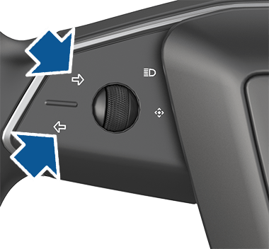 Pour activer un clignotant, appuyez sur le bouton en flèche correspondant sur le côté gauche du volant. Le clignotant se désactivera selon l’angle du volant (par exemple, lorsque vous avez complété le virage). Vous pouvez également désactiver un clignotement en appuyant une deuxième fois sur le bouton des clignotants.