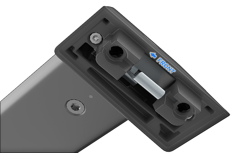 - Localisez la flèche FRONT (AVANT) en relief sur le dessous de la barre transversale. La flèche doit pointer vers l'avant du véhicule.