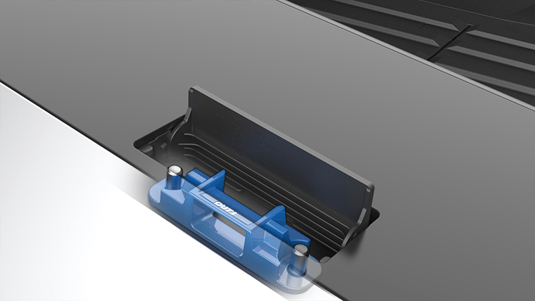 - Répétez les étapes 2 à 4 pour les portes d'applique restantes.RemarqueAprès avoir installé les supports une fois, vous pouvez les laisser en place pour une utilisation future, à moins que vous ne souhaitiez déplacer les barres transversales à différents endroits sur le véhicule.RemarqueSi une applique de toit n'est pas correctement fixée, elle risque de tomber du véhicule. Tesla n'est pas responsable des appliques cassées ou manquantes.