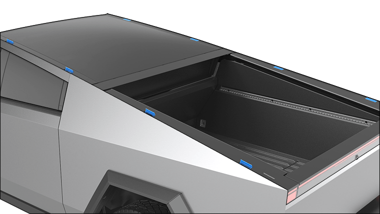 La trousse de barres transversale est livrée avec huit appliques à monter sur le toit de Cybertruck.