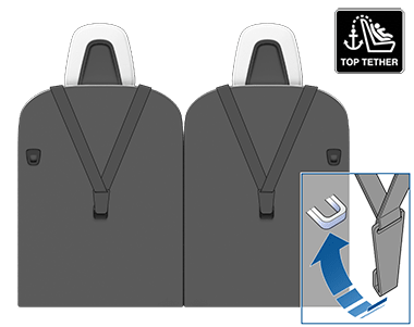 第二排和第三排座椅支持使用上部系带。如果儿童约束系统生产商提供的说明书指出要固定上部系带,可将其挂钩固定到相关座椅后面的锚固点。