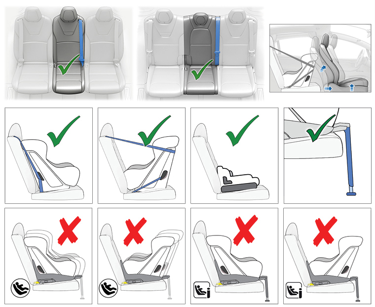 仅将 ISOFIX/iSize 儿童安全座椅安装到第二排侧座位置。仅在座椅中间位置使用安全带固定座椅。
