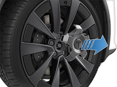 如果 Model X 配有轮毂盖,则必须将其拆下,才能操作轮毂螺母。
