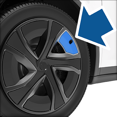 - 用力按压轮毂螺母保护帽,直至完全卡入位。警告驾驶前,请确保轮毂螺母罩完全固定,以防掉落。