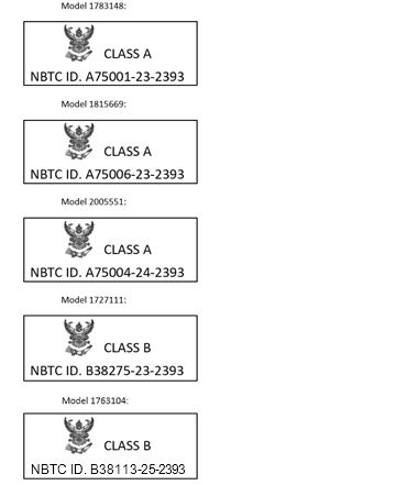 “เครื่องวิทยุคมนาคมนี้มีระดับการแผ่︎คลื่นแม่เหล็ก ไฟฟ้︎าสอดคล้︎องตาม มาตรฐานความปลอดภัยต︎อสุขภาพ ของมนุษย์︎จากการใช้︎เครื่องวิทยุคมนาคมที่คณะกรรมการ กิจการ โทรคมนาคมแห︎งชาติประกาศกําหนด”