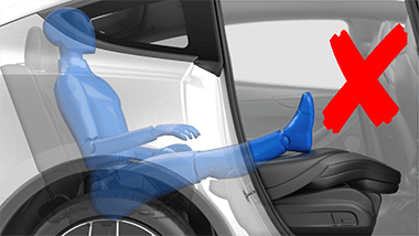 잘못된 착석 자세 - 동승자의 발이 바닥에 있어야 함: