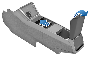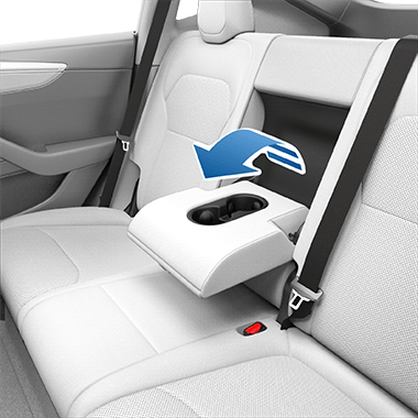 Uw Model Y heeft een achterconsole in het midden van de rugleuning op de tweede zitrij. Trek de console omlaag voor toegang tot de bekerhouders achterin of om de console te gebruiken als armsteun.
