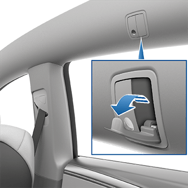 Uw Model Y is aan weerszijden van de tweede zitrij boven de ruit voorzien van een kledinghanger, naast de leeslamp. Druk op de kledinghanger om deze uit te schuiven. Druk er nogmaals op om deze in te trekken.