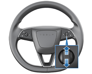 要调整希望 Model Y 与前方车辆保持的跟车距离,请向左或向右按方向盘的右滚轮按钮。