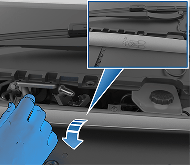 - 打开前备箱盖(请参阅在没电的情况下打开前备箱盖)。