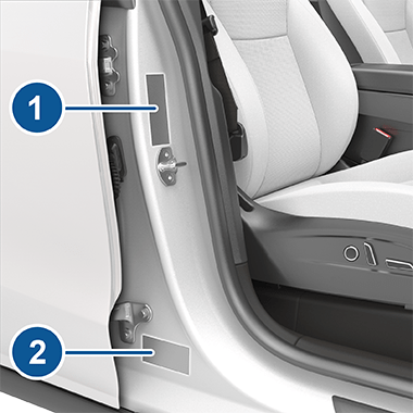 这两个标签均可在打开副驾位车门时从相应车门柱上看到。