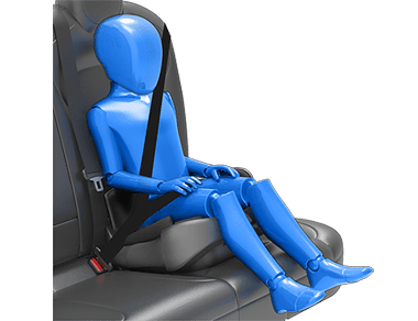 身形较大的儿童乘坐时,确保儿童的头部得到支持,并对儿童座椅安全带进行适当调整和固定。肩部安全带必须避开面部和颈部,搭接部分也必须避开腹部。