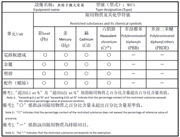 取得審驗證明之低功率射頻器材,非經核准,公司、商號或使用者均不得擅自變更頻率、加大功率或變更原設計之特性及功能。低功率射頻器材之使用不得影響飛航安全及干擾合法通信;經發現有干擾現象時,應立即停用,並改善至無干擾時方得繼續使用。前述合法通信,指依電信管理法規定作業之無線電通信。低功率射頻器材須忍受合法通信或工業、科學及醫療用電波輻射性電機設備之干擾。